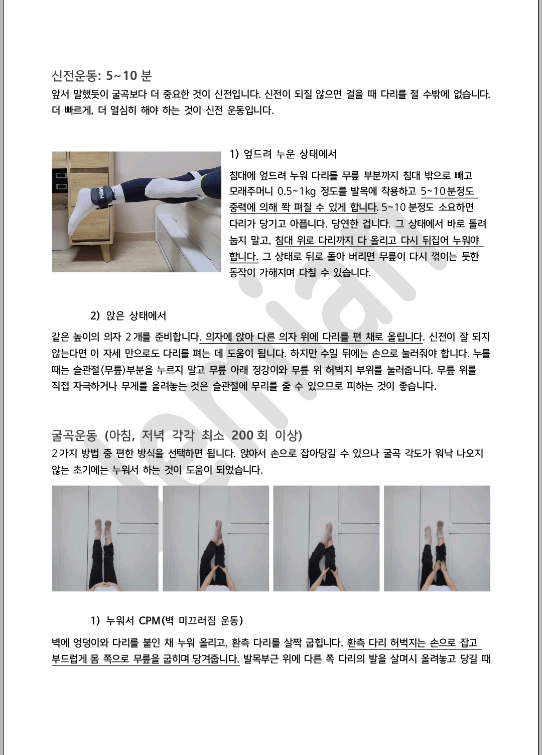 2) 70가지 운동법과 노하우: 전문적인 스포츠 재활 센터에서 제가 직접 해본 재활 운동 방법과 노하우를 자세 사진, 운동 포인트, 횟수, 시간, 운동 강도를 높이는 법과 함께 디테일 하게 알려드립니다. 인터넷 검색으로도 이러한 십자인대 재활 운동법은 쉽게 얻을 수 없을 겁니다.