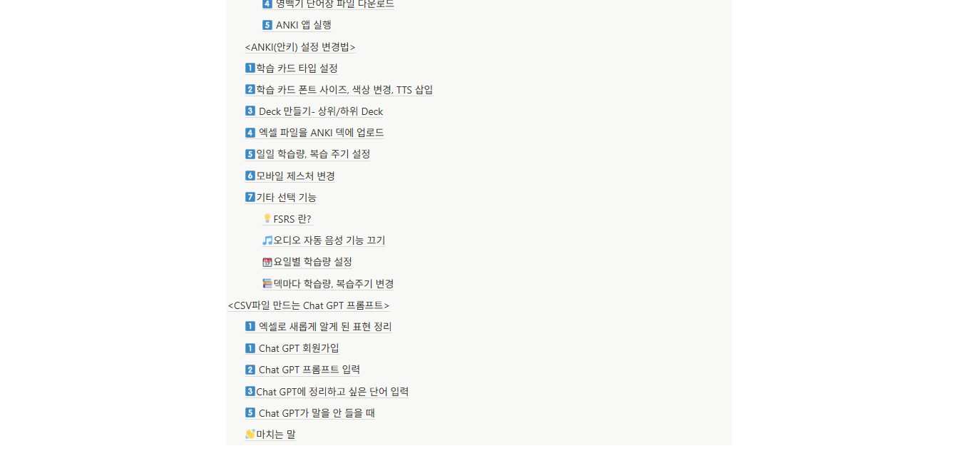 위 블로그에는 공개가 안 된 세세한 안키사용법/ Chat GPT 프롬프트/ANKI 단어장까지 모든 노하우를 40페이지 분량의 전자책으로 만들었습니다.