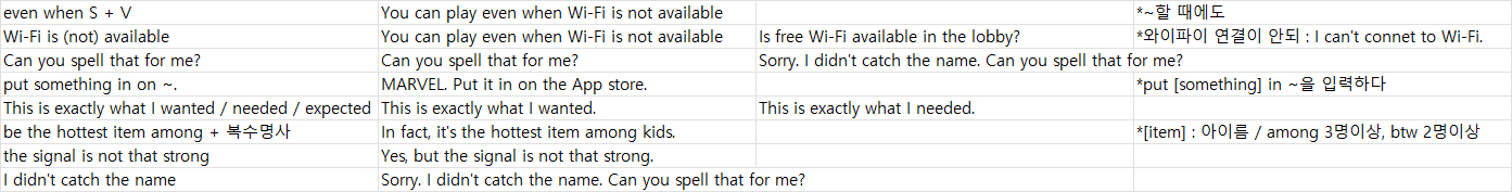 형광펜으로 밑줄쳤던 표현들을 엑셀에 적는다