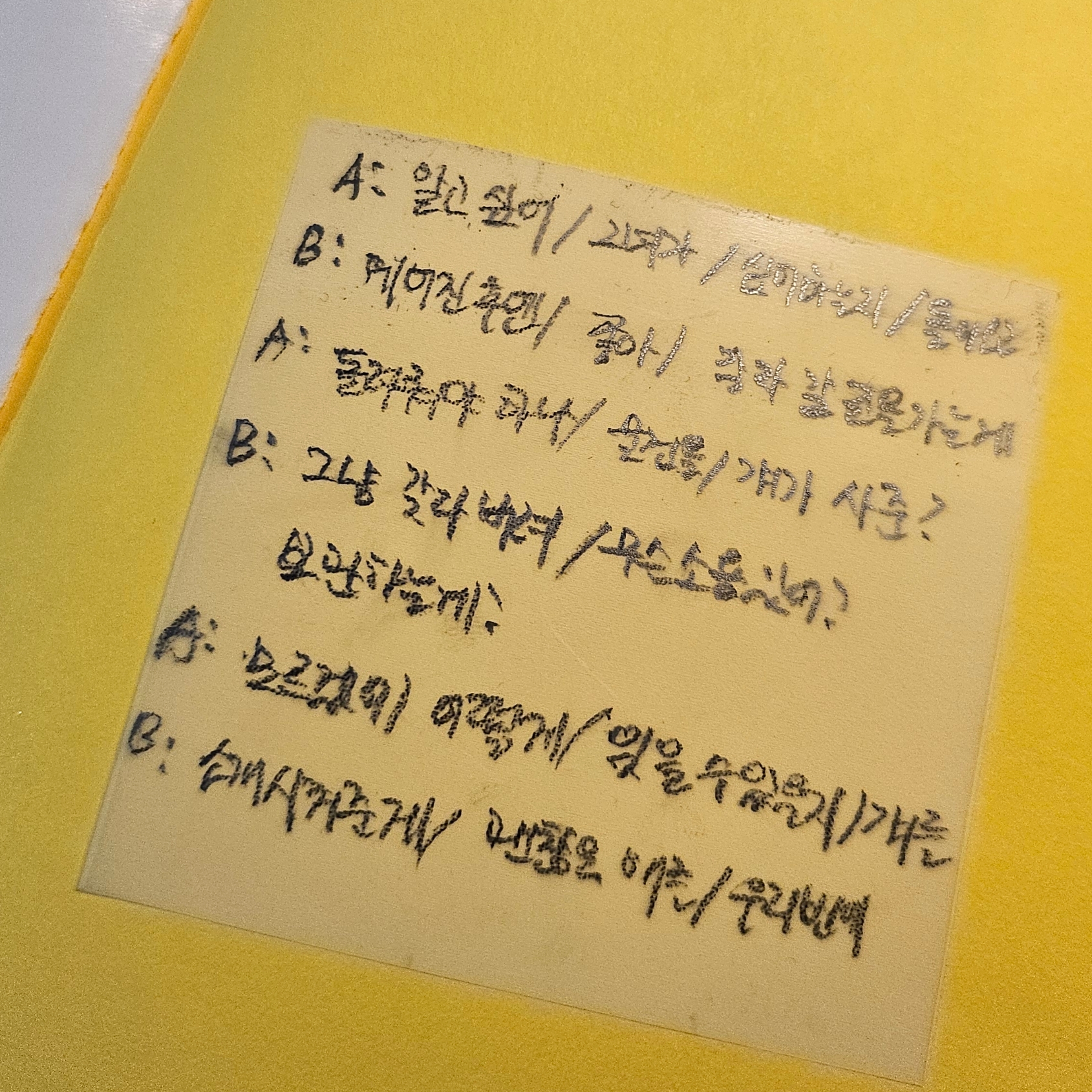 발음이 이상하게 들린 곳은 빨간펜으로 체크하고 아래에 [ ] 들렸던 발음 적기