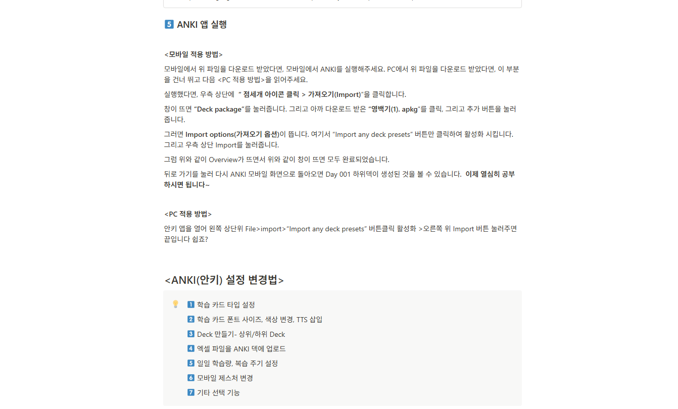 (자세한 건 ANKI 업로드 방법 등 검색해보기)
