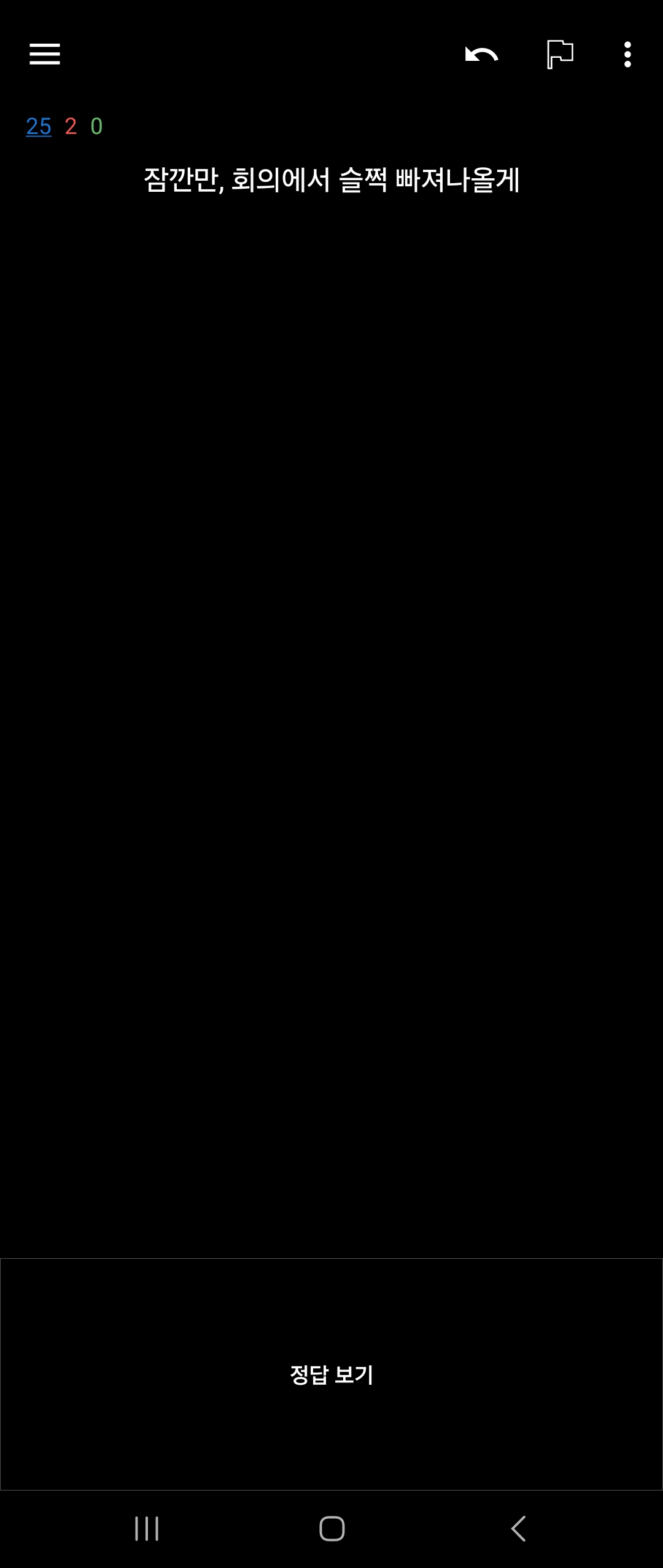 한국어 해석만 보고 영어 전체문장 맞추는 식으로 진행중