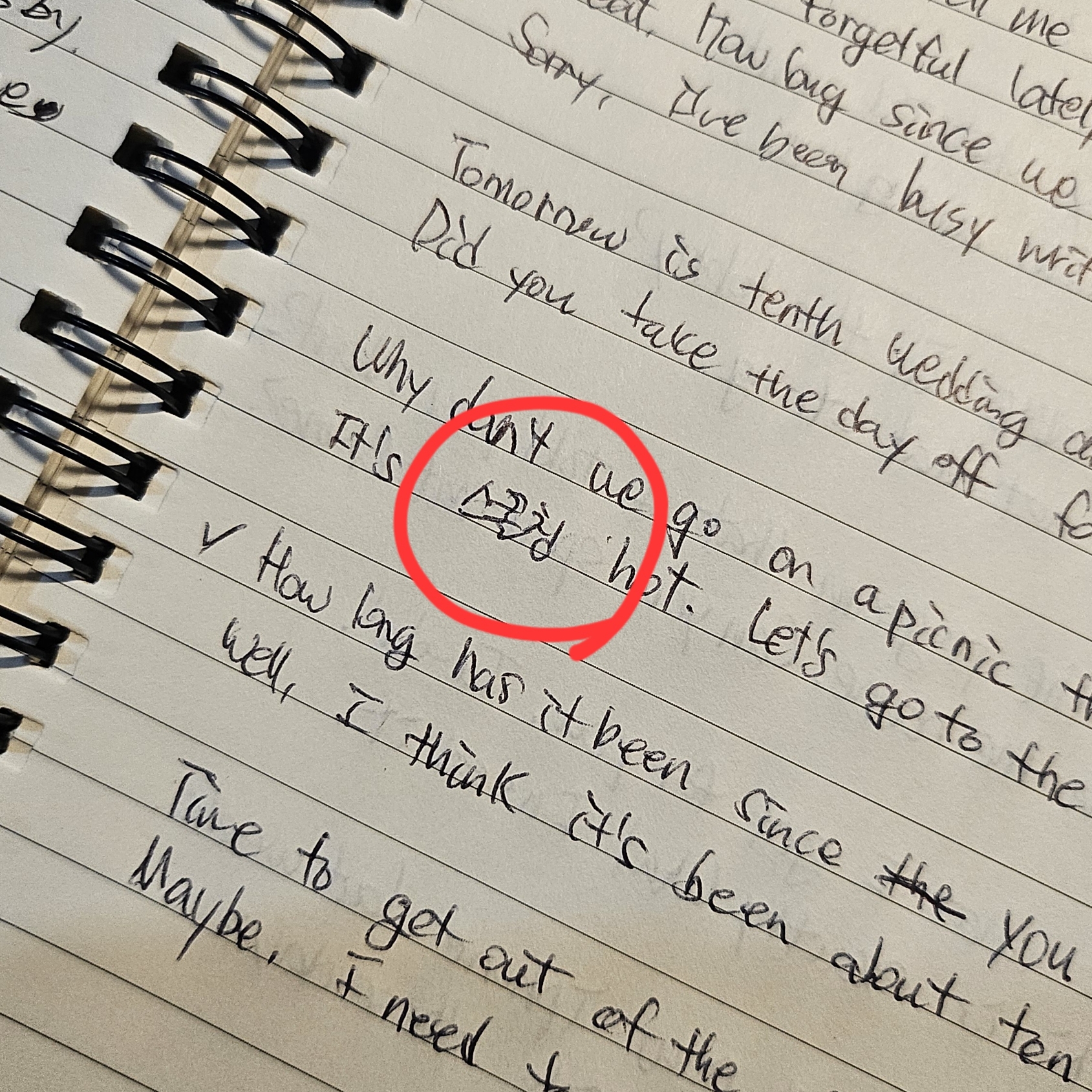 스펠링이나 문법이 틀렸으면 파란펜으로 체크