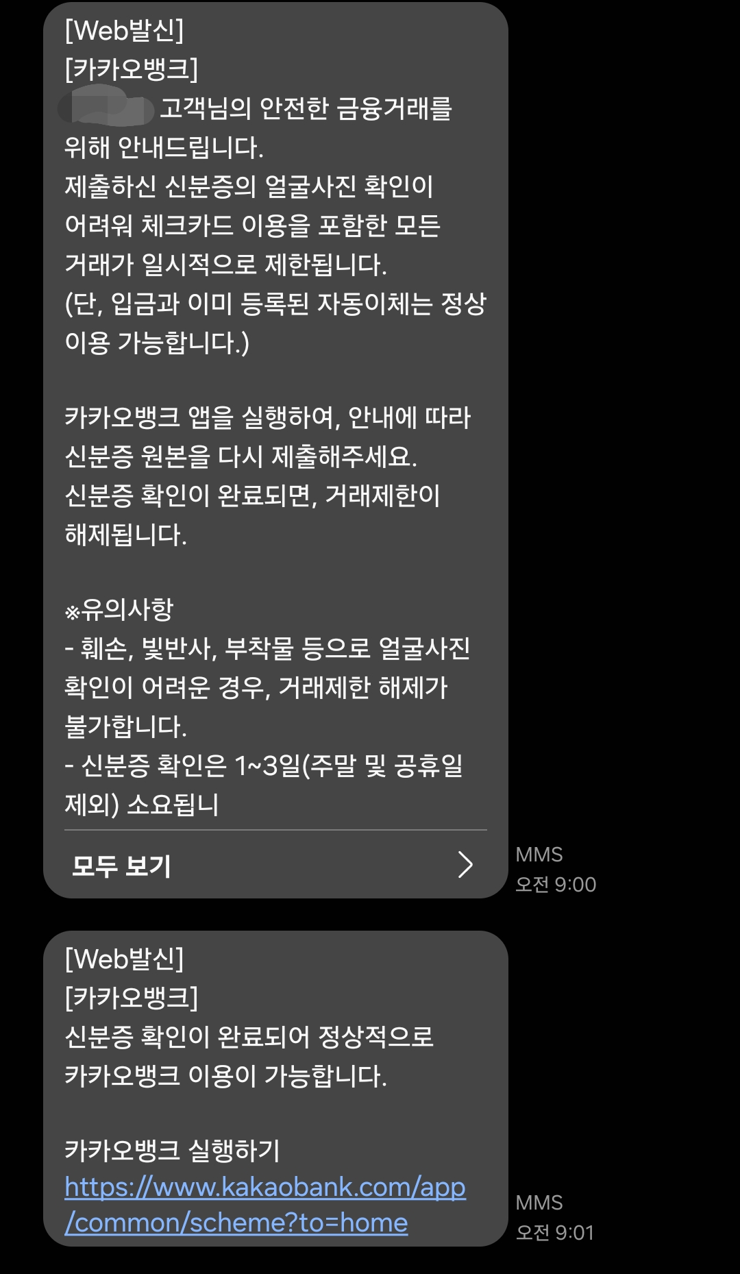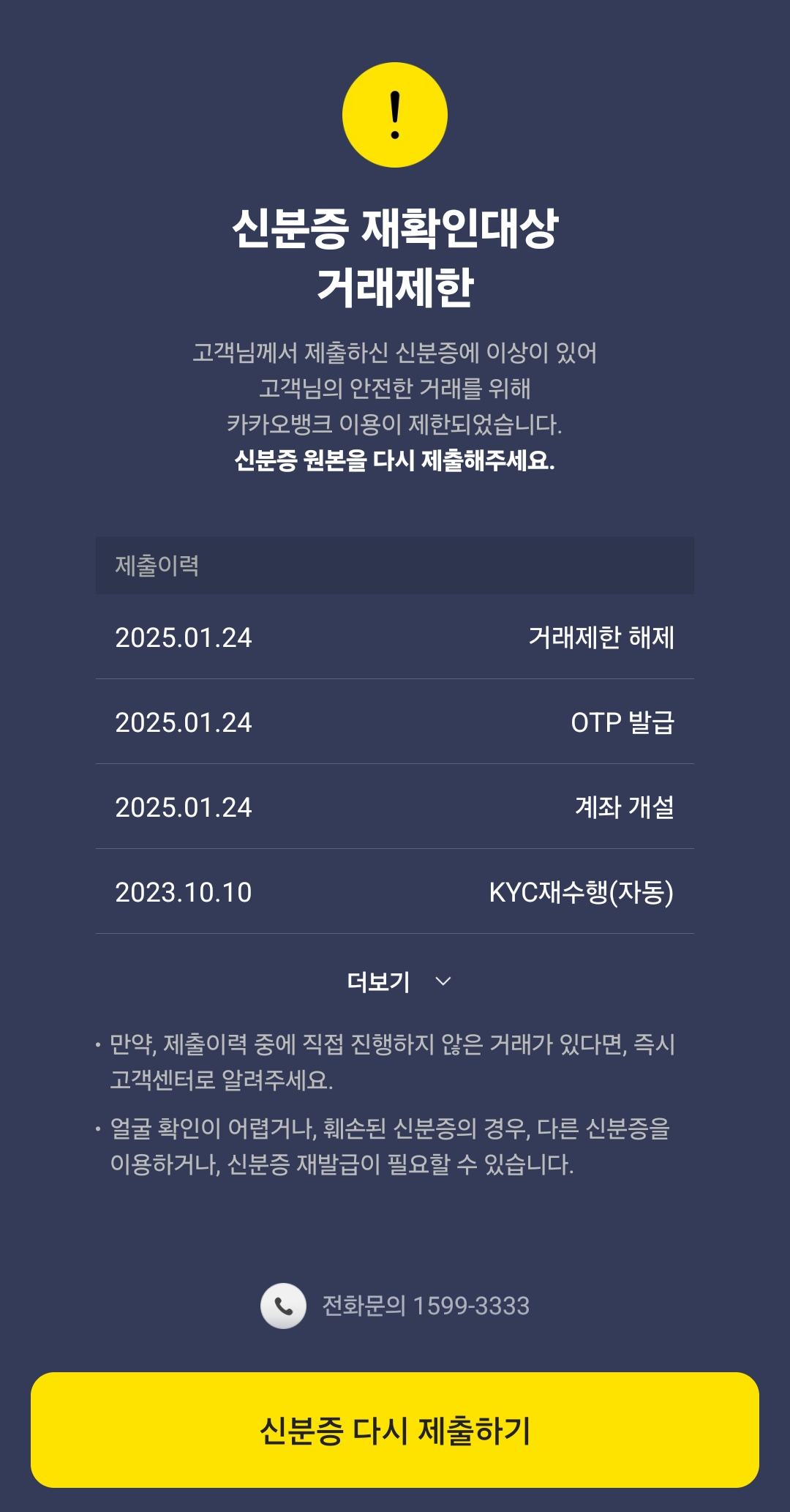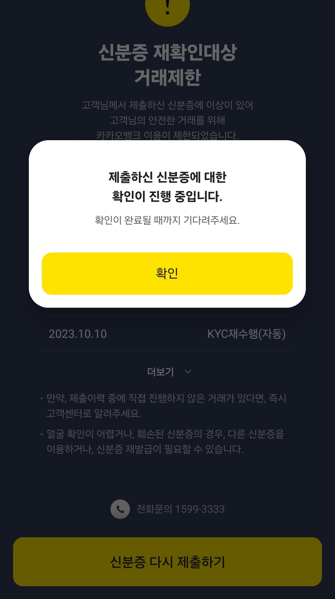그러더니 지금 사고신고->신분증 재확인대상-> 카카오뱅크 자체가 안들어가진다.