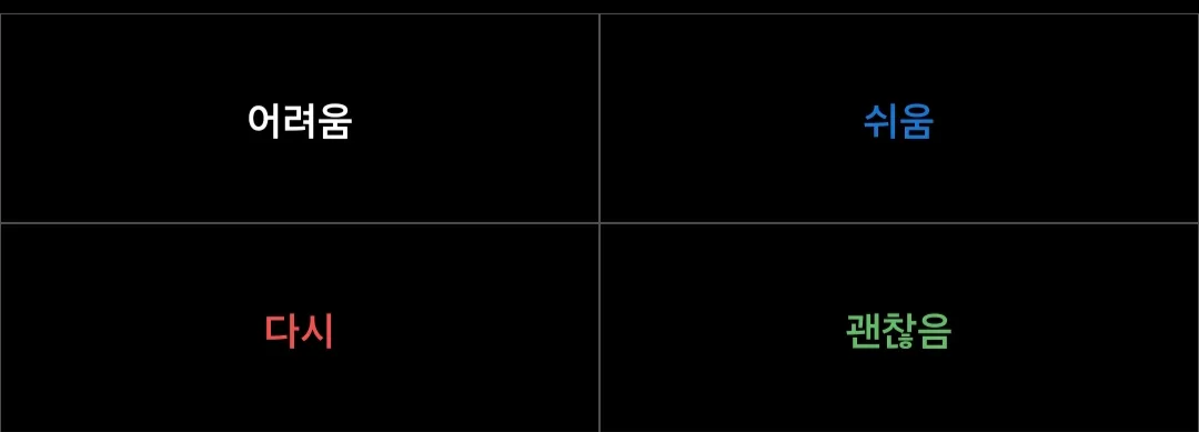 화면 아래에는 '다시', '어려움', '쉬움', '괜찮음' 네 가지 버튼이 있는데요,